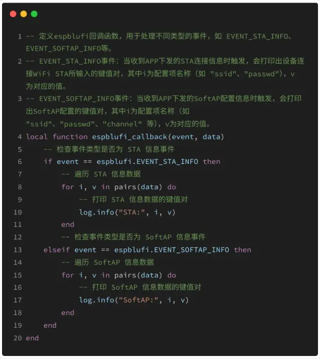 定义espblufi回调函数,用于处理不同类型的事件。