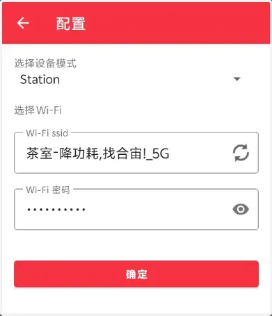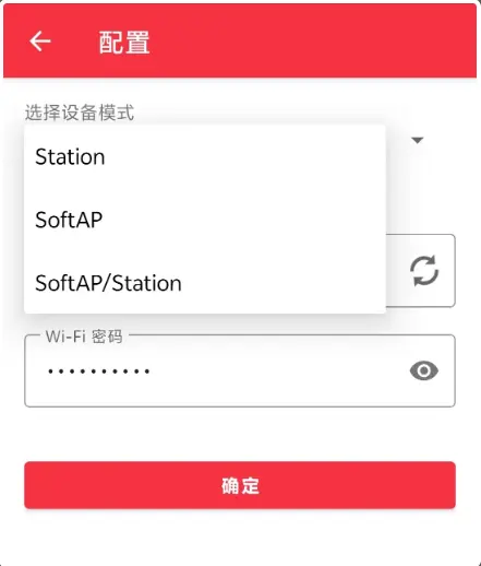 4)点击配网,进行Station配网模式,选择需要连接的Wi-Fi,输入对应的密码,即可开始连接。