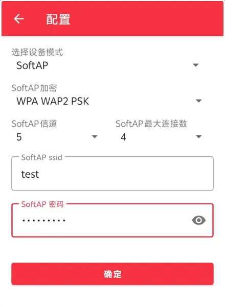 2)此时,点击配网,选择SoftAP模式,配置AP热点: