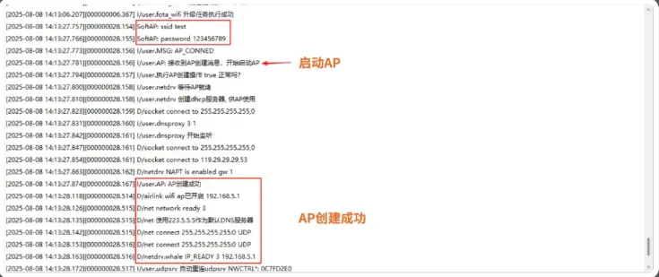 以Air8000核心板为例,实现“STA+SoftAP双模式BLE配网” 功能——手机通过BLE下发Wi-Fi账号/密码或热点参数,Air8000自动完成Station连接或SoftAP创建,并验证网络可用性。