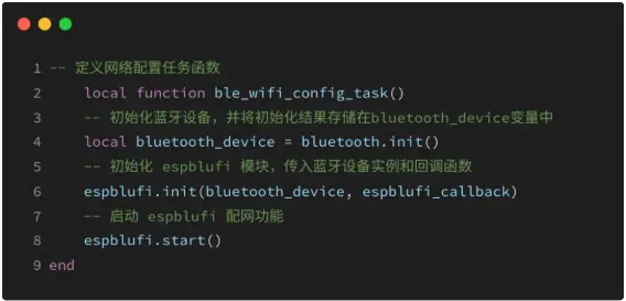 使用蓝牙配网,首先需要初始化蓝牙设备并启动espblufi配网功能。