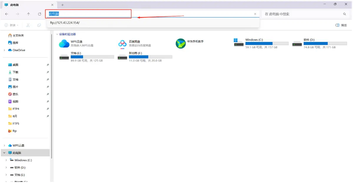 方法 1 Windows 资源管理器: - 打开“我的电脑”,在地址栏输入“ftp://121.43.224.154/”,按回车键。