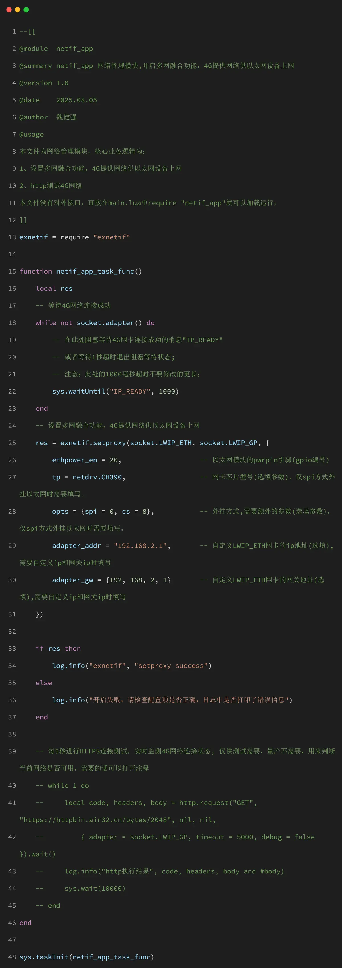本文仅介绍程序中使用到的 API 接口,详细接口说明请查看:https://docs.openluat.com/osapi/ext/exnetif/