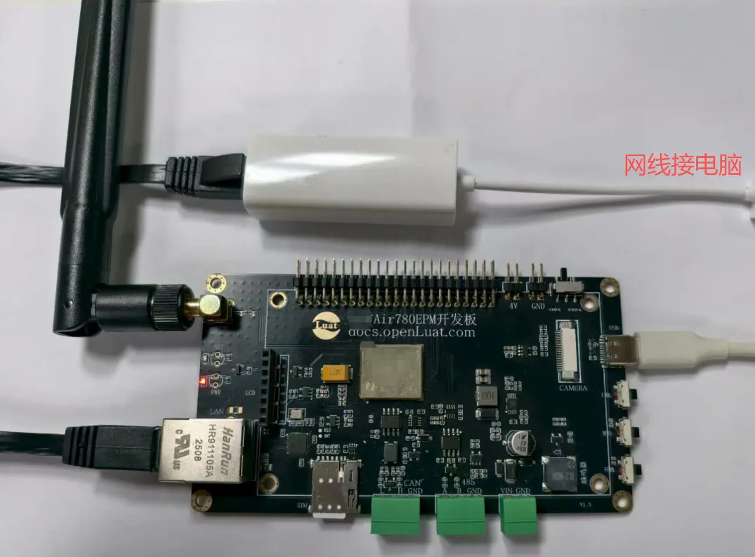 2.1.1 Air780EPM 1.3 版本开发板一块 + 可上网的 sim 卡一张 +4g 天线一根 + 网线一根: