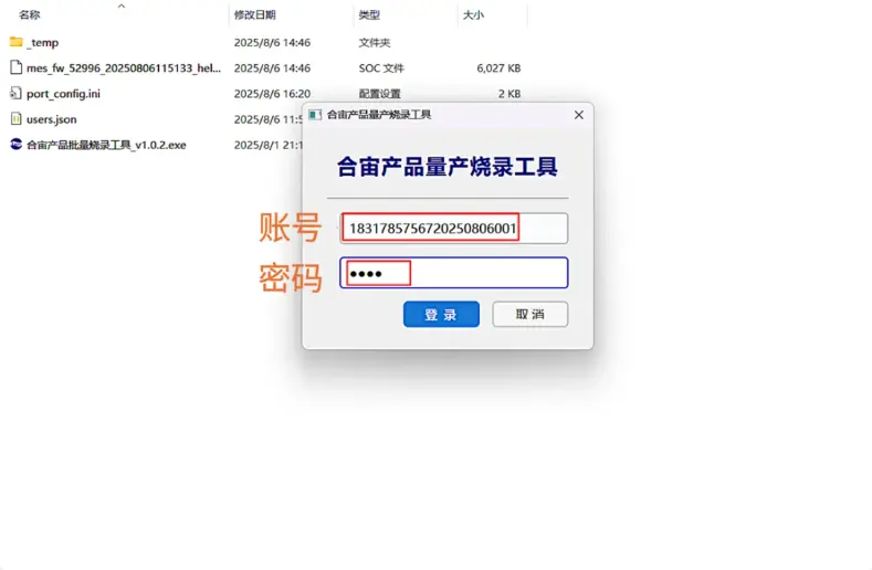 如果此目录下没有该配置文件,就先运行批量烧录工具程序,双击运行即可,登录方式参考下文第四章节,也可以先不登录,运行就会有port_config.ini。