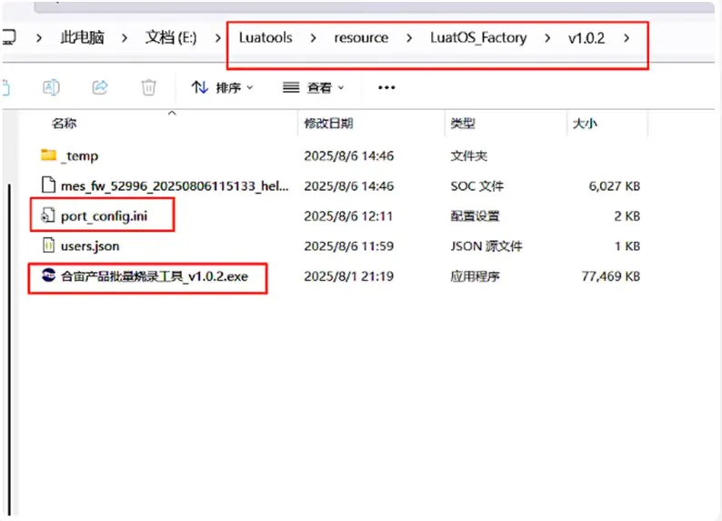 最新量产烧录工具文件已集成在LuaTools资源中,可根据以下示例操作进行下载及配置。