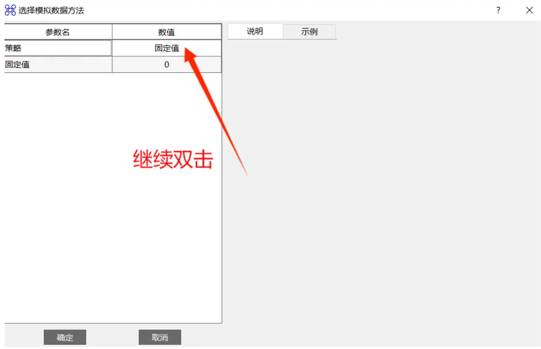 点击确定后可以看到增加了 4 个条目,双击数值一栏,然后再双击固定值一栏即可按需选择模拟数据的方法。