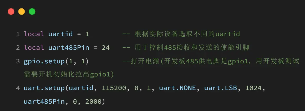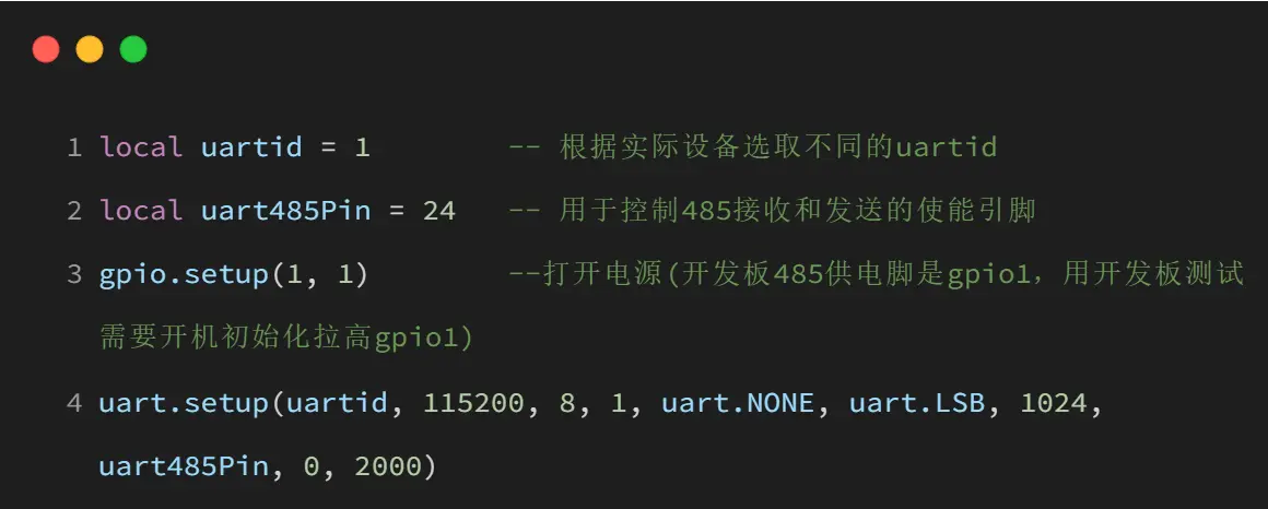 5.点入配置,按照代码中uart.setup设置参数后,选择 RTU 传输协议,点击确定即可,设置完毕后在通道管理界面配置的通道显示属于正常状态。用户如果接的是自己的下位机,请将 uart.setup 传入的参数成自己下位机的配置参数。
