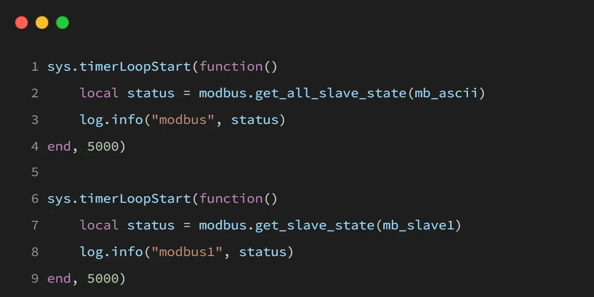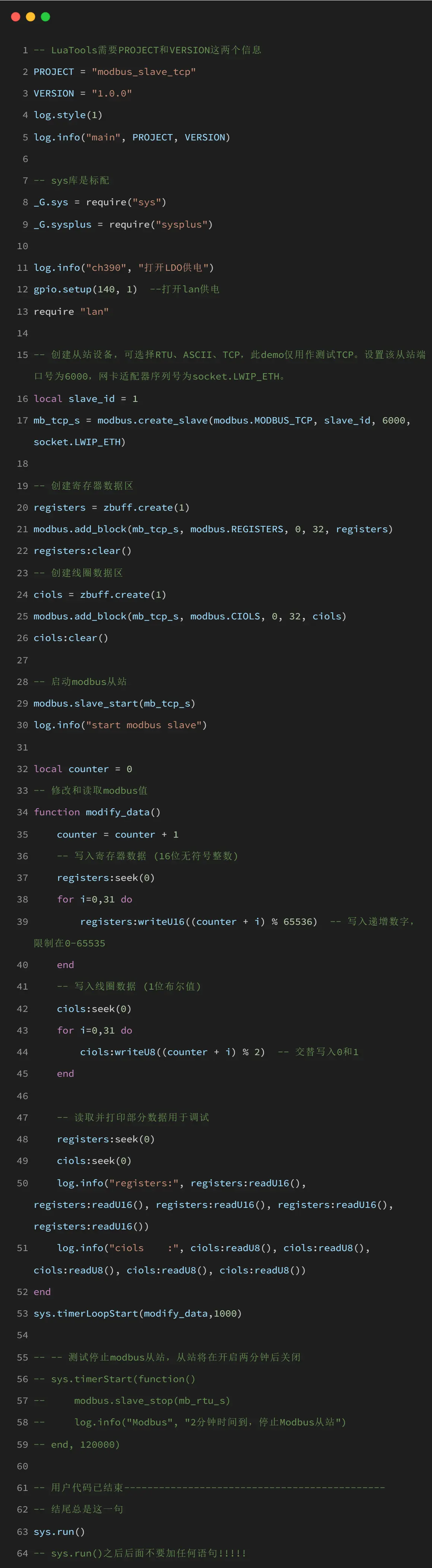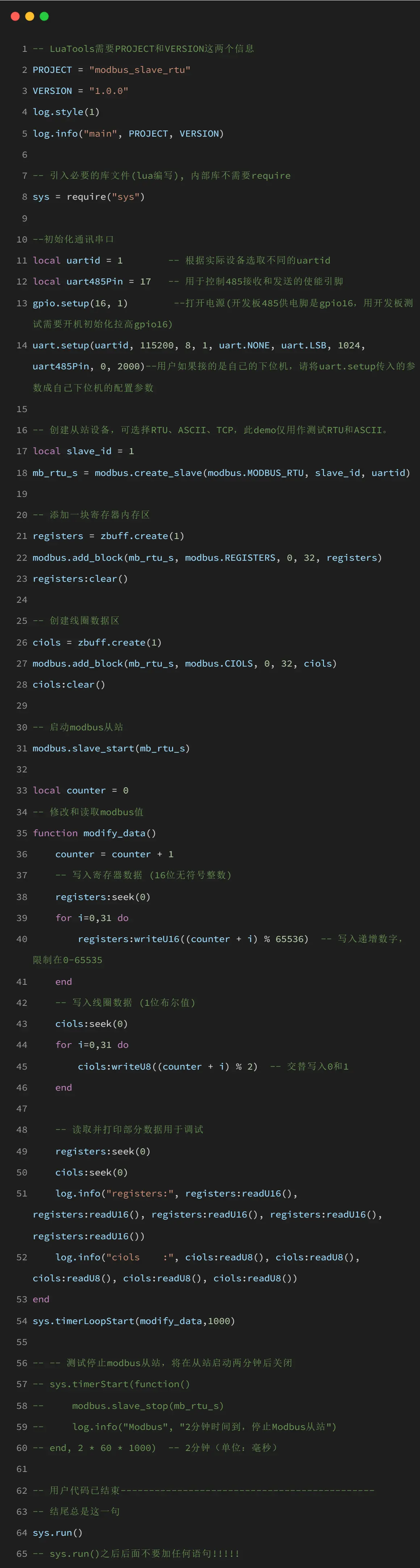 本教程演示了 Air8000 modbus 在 RTU、ASCII 和 TCP 三种协议下的使用过程,请根据具体场景选择您需要的 demo 即可。