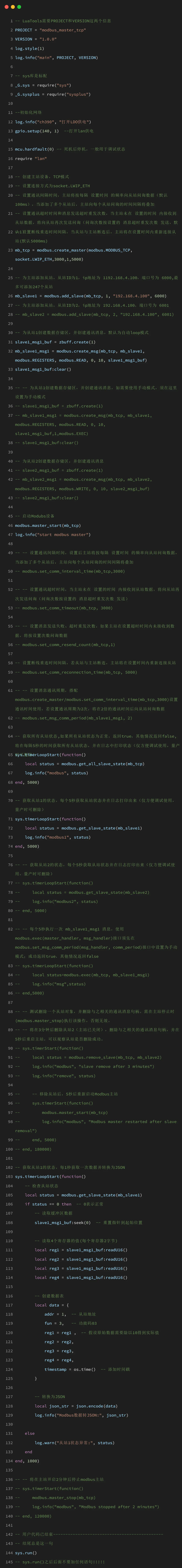本篇文章演示的内容为:通过 RTU、ASCII 和 TCP 三种常用协议,Air8000 开发板作为主站(客户端)与从站连接通讯的过程,或开发板作为从站(服务器)与主站连接通讯的过程。