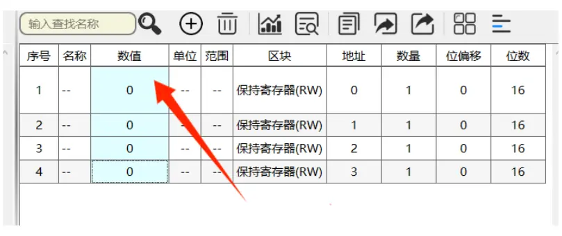 9.点击数值栏获取到从站寄存器和线圈的数据,主站与从站连接与通讯成功。