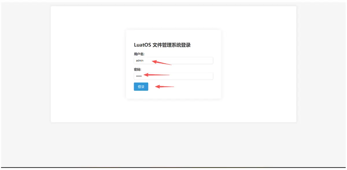 使用默认用户名 admin 和密码 123456 登录文件管理系统