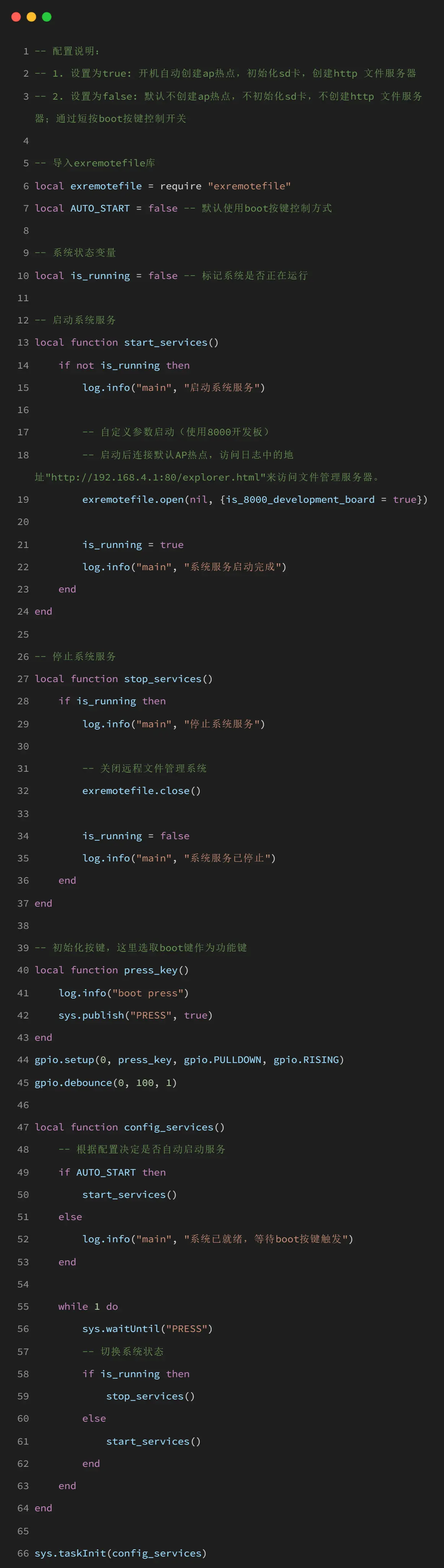 任务控制:通过 boot 按键控制文件管理系统的启停