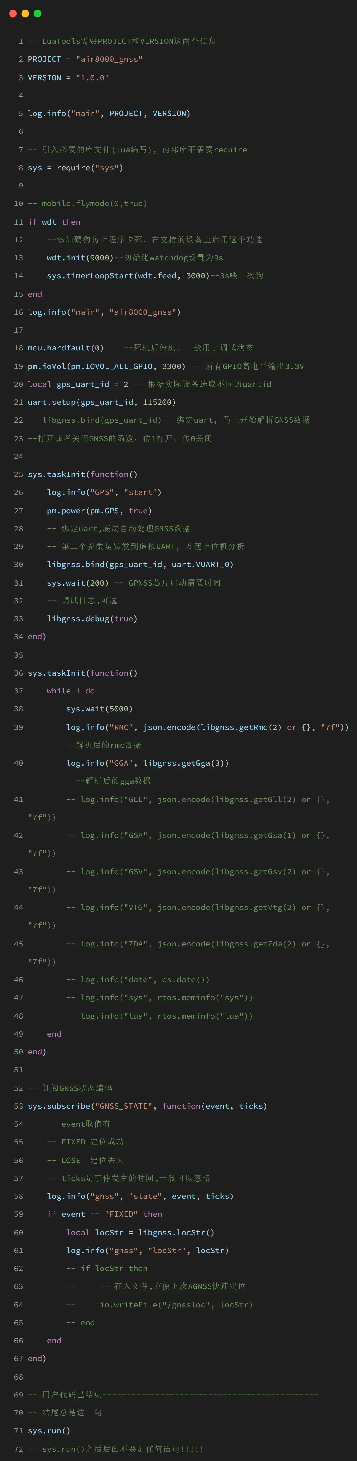 本教程详细介绍了如何使用 Air8000 的 GPS 功能,包括硬件连接、软件配置、代码编写等步骤。通过本教程的学习,读者应该能够掌握 Air8000 GPS 功能的基本使用方法,并能够根据实际需求进行扩展和应用。