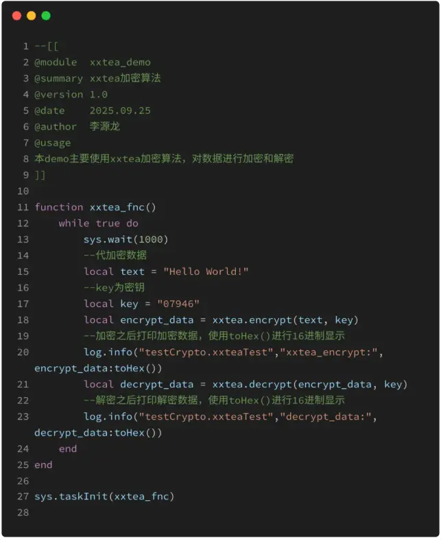 LuatOS开发示例:本文将以Air780EPM开发板为例,分享如何在LuatOS中通过极简API,使用XXTEA算法进行数据加密和解密。