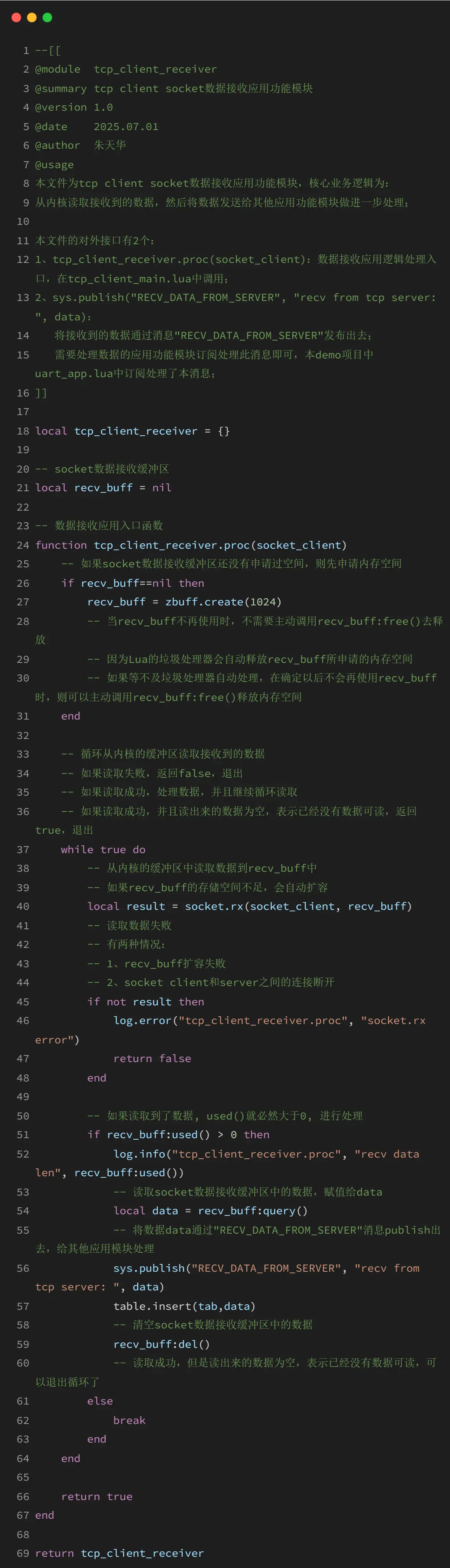 TCP 部分代码为通用格式内容,里面有对注释的描述,在 GNSS 篇章就不过多对 TCP 的代码做讲解了,如果有需要可以看 TCP 章节