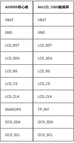 2、Air8000 核心板与 AirLCD_1060 屏幕