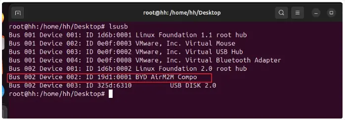 因为Air780EPM的RNDIS使用CDC-ACM驱动,大部分Linux系统默认就支持,所以无需设置代码,插入USB就可以在Linux中使用。