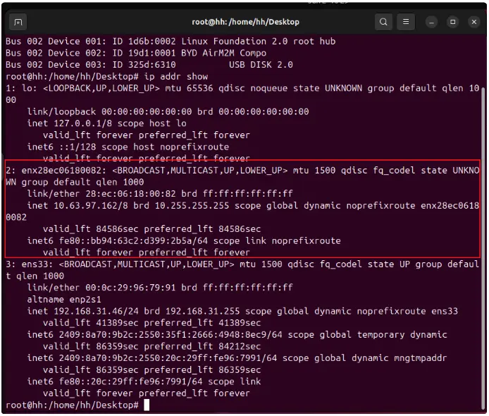 每个设备的ethx可能不一样,插入Air780EPM后增加的网卡即为RNDIS网卡。