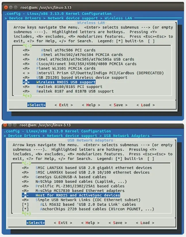 如果遇到没有RNDIS驱动的情况,可在编译内核时参考下图配置: