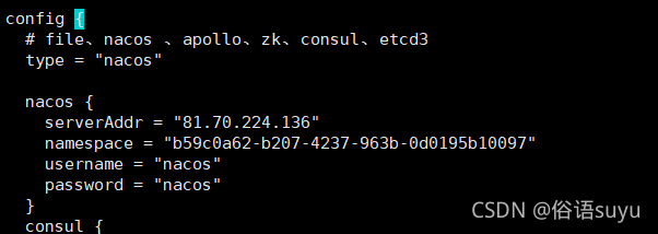 sh nacos-config.sh -h localhost -p 8848 -t 命名空间ID -u nacos -w nacos将配置推送到nacos