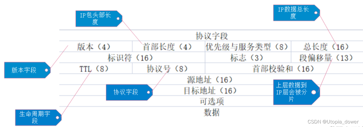 优先级与服务类型(8bit):该字段表示数据包的优先级和服务类型,通过在数据包中划分一定的优先级,用于实现服务质量的要求