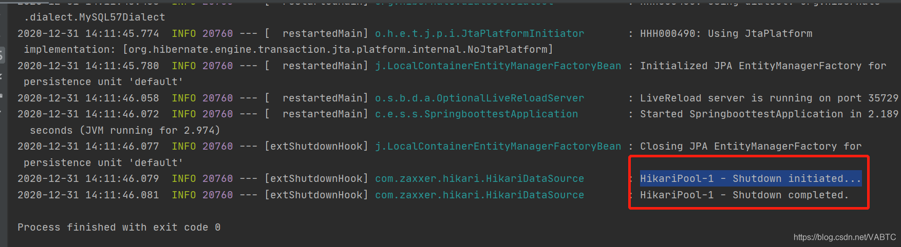 问题1:HikariPool-1 - Shutdown initiated... HikariPool-1 - Shutdown completed.程序启动后立马关闭