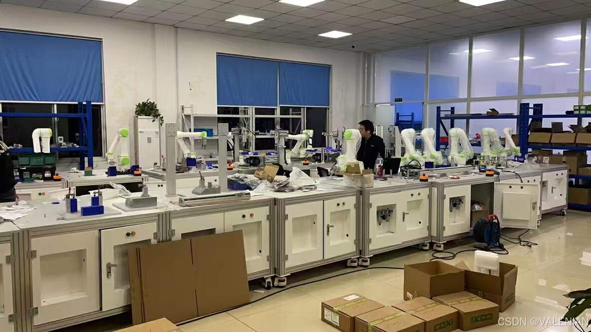 由1台六自由度工业机器人系统、瓦伦尼安图像智能视觉检测系统、可编程控制器(PLC)系统、RFID数据传输系统、工具换装单元、四工位供料单元、环形输送单元、直线输送单元、工件组装单元、立体仓库单元、废品回收框、各类工件、电气控制柜、型材机架等组成。