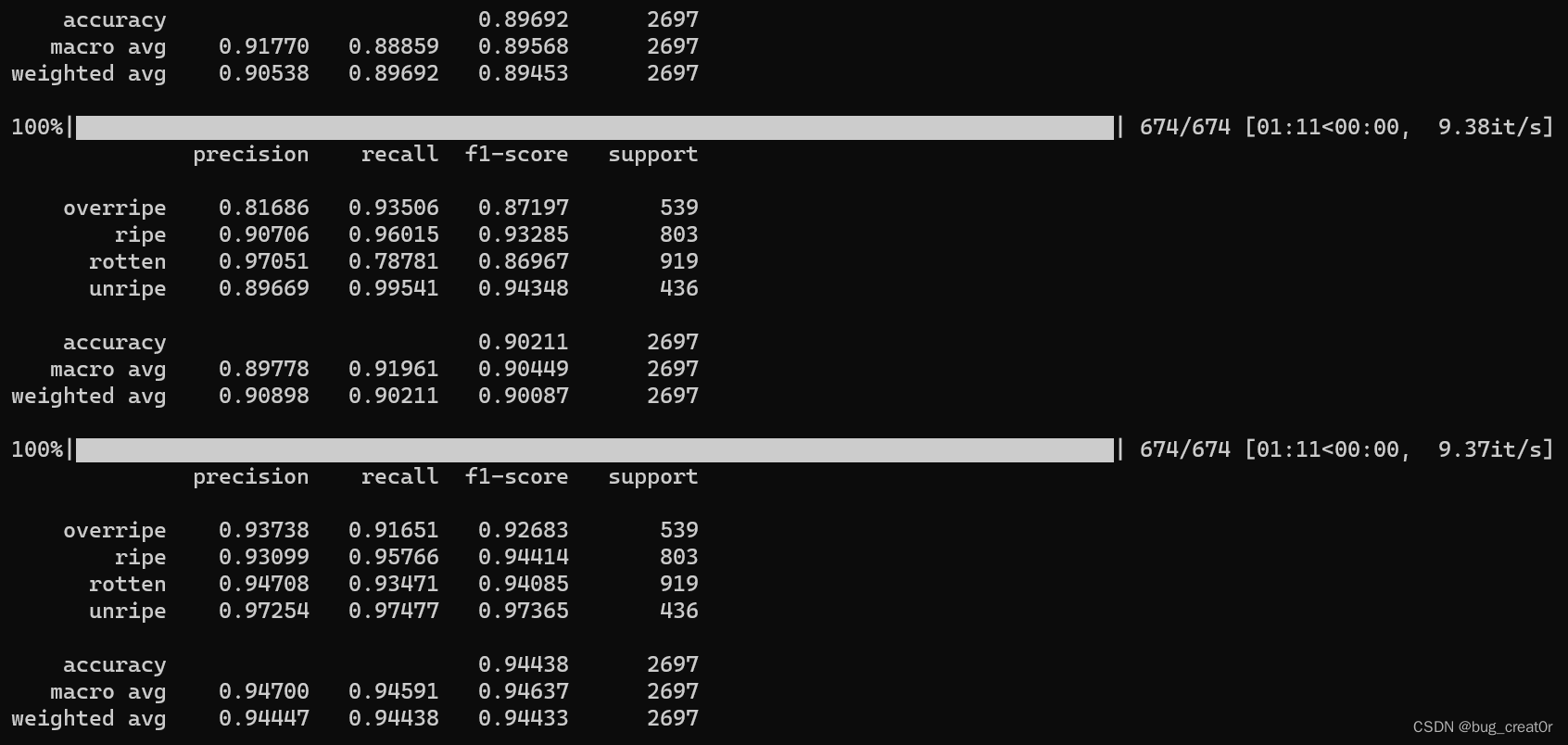 训练的每个epoch都会显示准确率precision、召回率recall和 f1-score