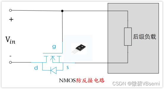 拿一个微碧的N-MOSFET来做一个防反接电路: