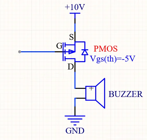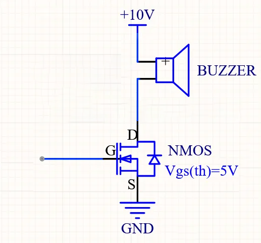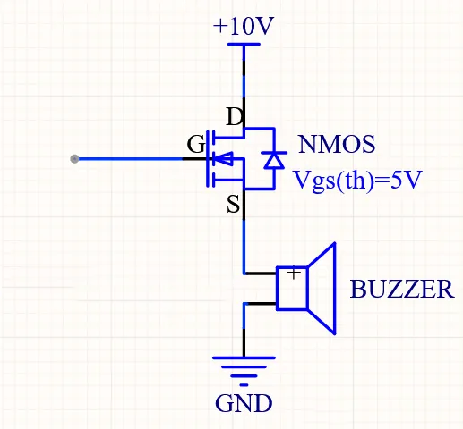以 NMOS 为例,其导通条件是 Vgs(栅源电压)≥阈值电压 Vgs (th)(比如 5V)。若负载接在电源端,此时源极(S)接地,栅极(G)的电压只需相对于地达到 5V,就能满足导通条件 —— 负载的压降不会影响 Vgs,无论负载阻抗如何变化(比如蜂鸣器压降从 1V 变为 1.2V),只要 G 极电压≥5V(不超额定值),管子就能稳定导通。