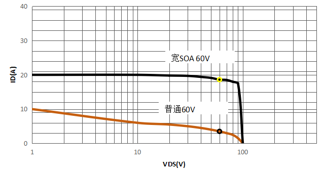 根据VB推出的100V MOSFET产品为例,SOA优化的产品,60V实测,过电流能力提升了3-4倍,从而提升了系统应用的可靠性。
