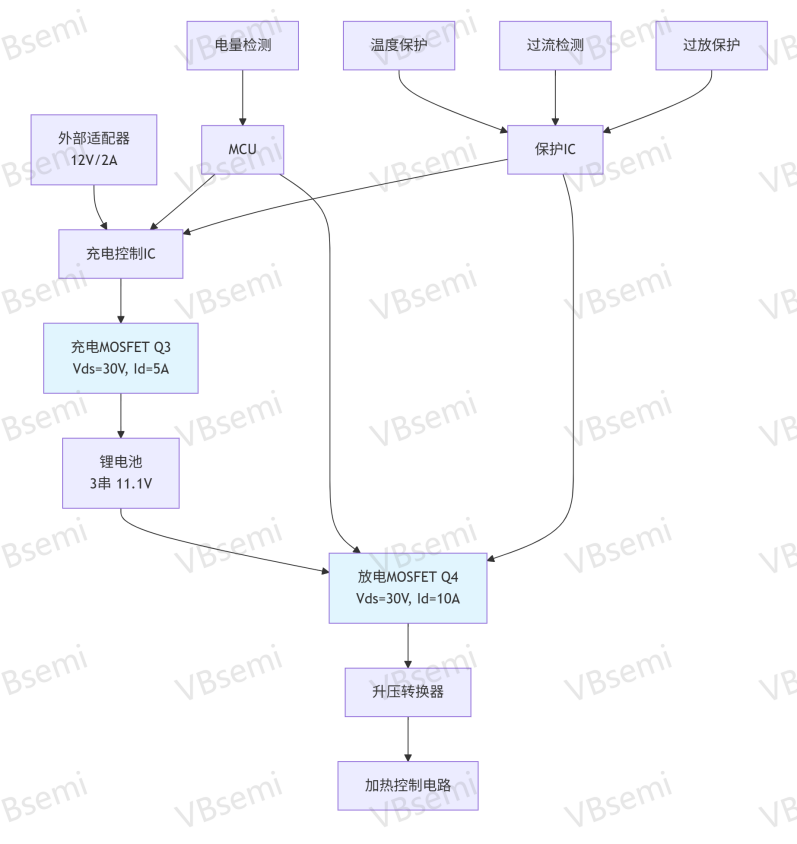 微碧充放电MOSFET拓扑结构图(养生壶)