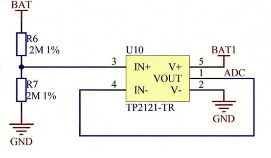 “老大,电池电压采集电路我画好了,就两个电阻分压,超简单!”