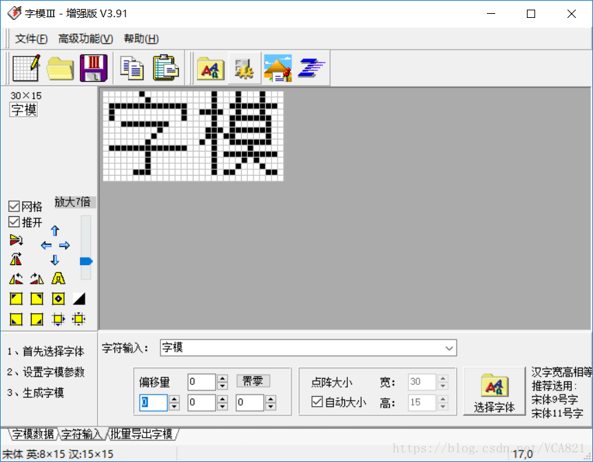 我可以告诉你,这些函数大都由液晶厂商提供,但代码原理并不难,有兴趣的同学可以查看,我们也称为驱动文件,我们将厂商提供的文件导入工程中,就可以调用函数了,十分的方便。那就有人要问了,能不能显示任意形状呢?答案是可以的,液晶简单来说是由许多的小灯组成,我们称之为像素,我们通过点亮特定点来组成文字或形状,那么如何确定点亮哪些灯呢?不用单心,我们有字符制作软件,只要将需要的字符或者汉字导入,便会生出相应的码表,导入工程即可调用,也是十分的方便