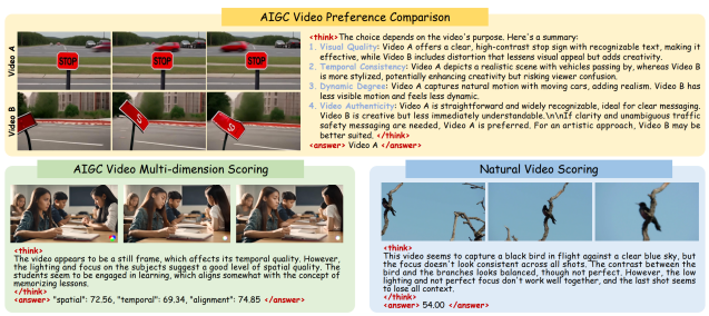 随着视频生成模型的涌现,仅凭一句提示词或一张图片生成逼真、生动的高质感视频正逐渐成为现实。随着 AIGC 视频技术加速演进,如何在后训练阶段进一步提升模型的生成质量变得尤为关键。可靠的质量评估与偏好选择不仅是评价工具,更是后训练的重要驱动力,它们能够精确引导视频生成模型向人眼感知对齐,从而显著提升画面质量与时序一致性。