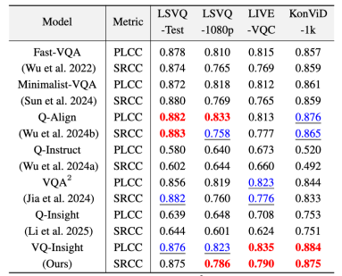 火山引擎多媒体实验室和北京大学合作的论文VQ-Insight: Teaching VLMs for AI-Generated Video Quality Understanding via Progressive Visual Reinforcement Learning 被选为本次会议口头汇报文章。