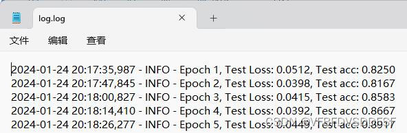 训练完成之后会有log日志保存本地,里面记录了每个epoch的验证集损失值和准确率。