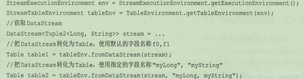 TableEnvironment可以把DataStream或者DataSet注册为TableTableEnvironment 也可以把Table对象转换为DataStream或者 DataSet