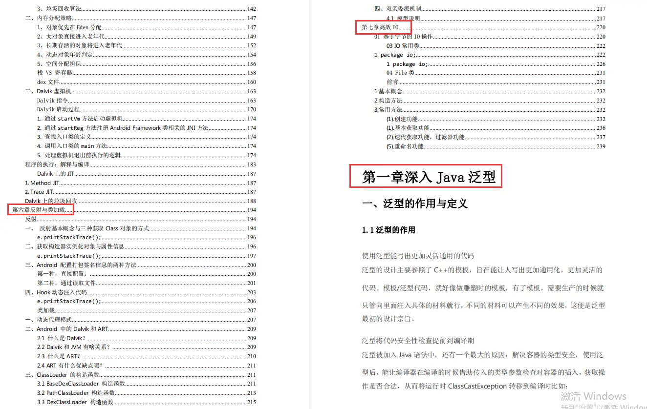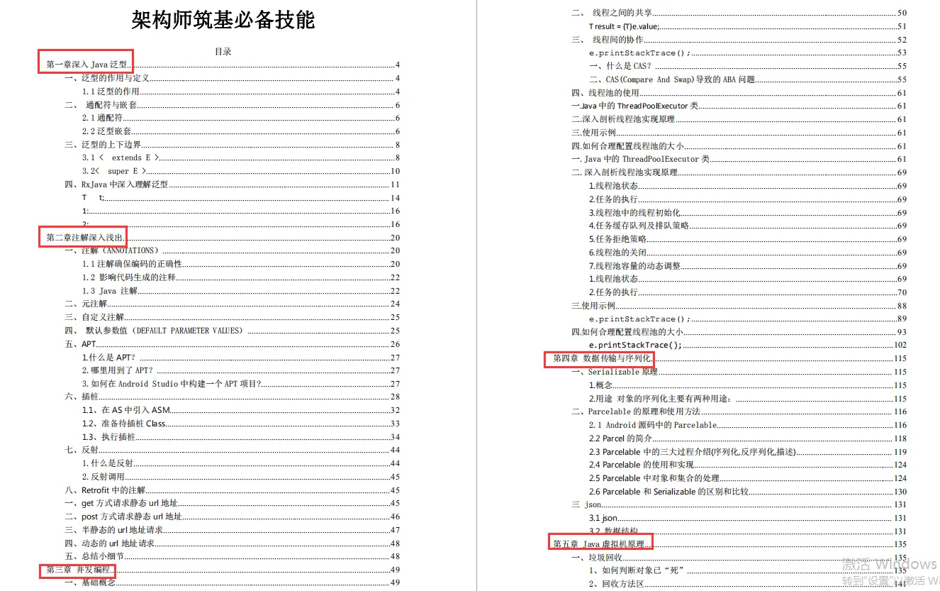 我花了将近半个月时间将:深入 Java 泛型.、注解深入浅出、并发编程.、数据传输与序列化、Java 虚拟机原理、反射与类加载、高效 IO、Kotlin项目实战等等Android架构师筑基必备技能整合成了一套系统知识笔记PDF,相信看完这份文档,你将会对这些Android架构师筑基必备技能有着更深入、更系统的理解。