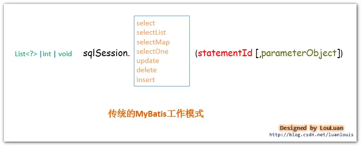 这是传统的传递Statement Id 和查询参数给SqlSession对象,使用SqlSession对象完成和数据库的交互;MyBatis 提供了非常方便和简单的API,供用户实现对数据库的增删改查数据操作,以及对数据库连接信息和MyBatis 自身配置信息的维护操作。