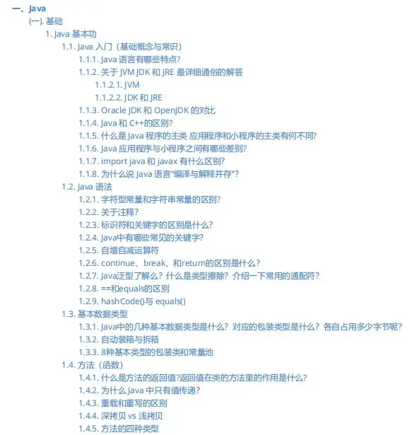 Java篇目录内容(涵盖Java基础及核心技术、容器、并发、JVM技术)