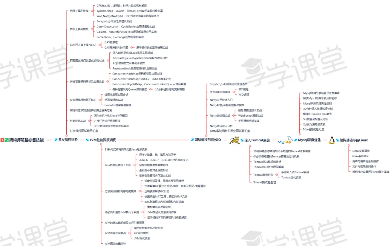 大家可以把Java基础,JVM,并发编程,MySQL,Redis,Spring,Spring cloud等等做一个知识总结以及延伸,再去进行操作,不然光记是学不会的,这里我也提供一些脑图分享给大家: