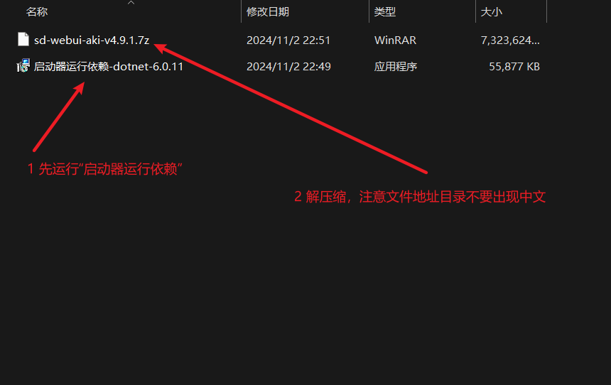 - 将“SD-webui-aki-v4.9.1.7z”压缩文件解压缩,注意文件夹地址目录中不要出现中文;