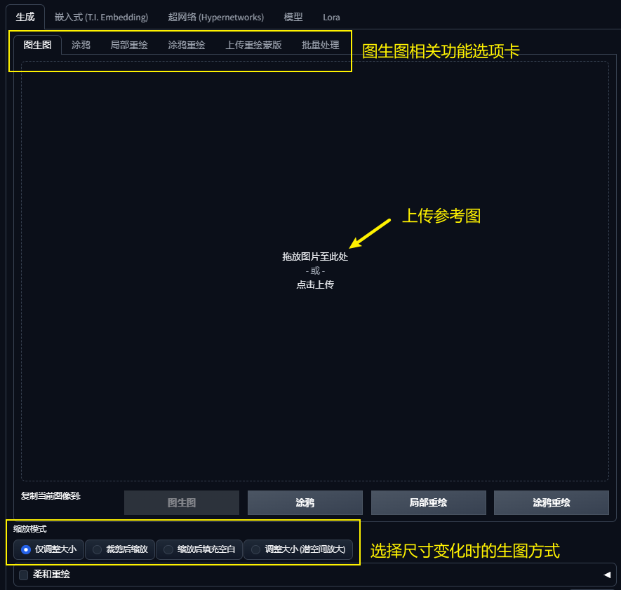 通过选项卡进入图生图界面(无初始图片)