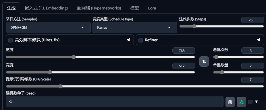 随机数种子:“-1”是指随机种子,在此情况下,每次出图均使用随机种子,出图均不相同;点击