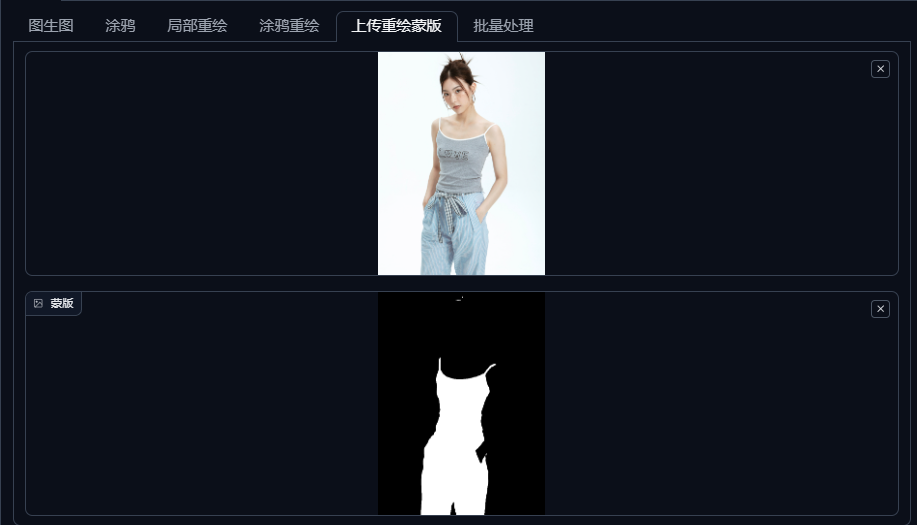 图生图模式-局部重绘-上传原模特图及蒙版图;