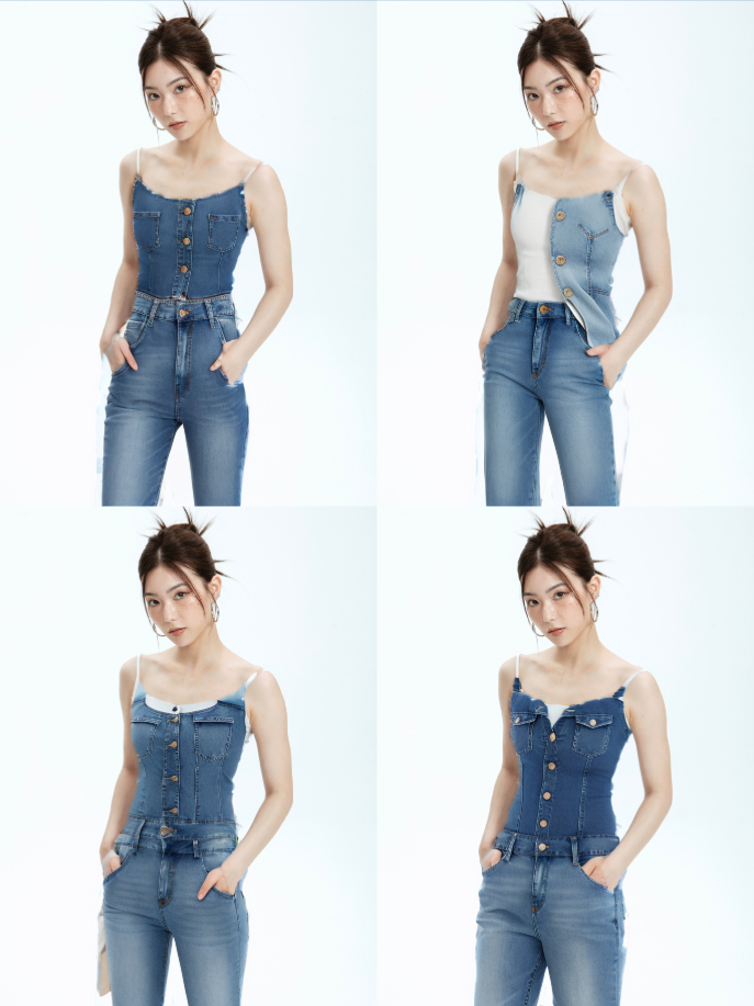 正向提示词:1 girl,white_vest,aqua blue jeans,hands in pants pockets,(一个女孩,白色背心,水蓝色牛仔裤,手在裤子口袋中)