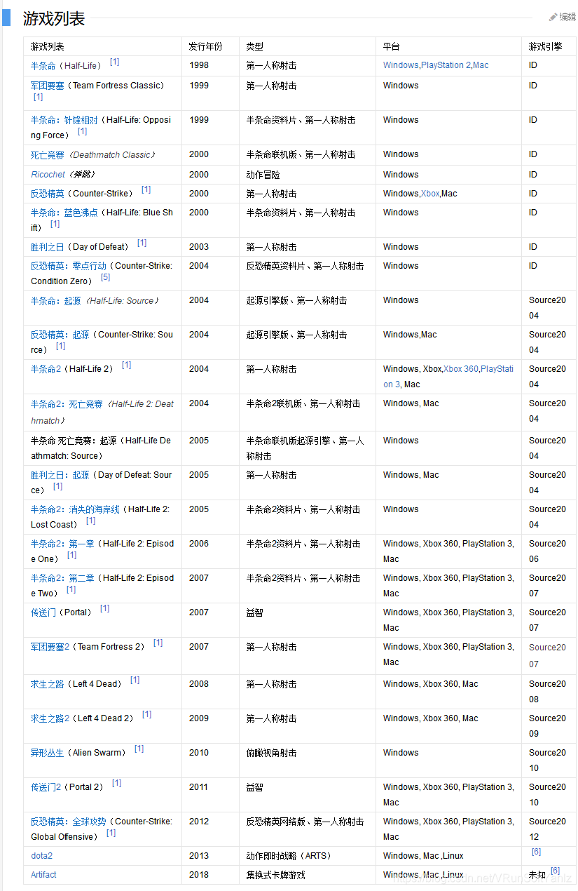++++[Valve]:Valve是“Valve Software(维尔福软件公司)”的简称,1996年成立于华盛顿州西雅图市,是一家专门开发电子游戏的公司,代表作品有半条命、反恐精英、求生之路、DOTA2等;Valve发布了一些扩展模式和接口供其它平台(如:Steam)的开发者使用;