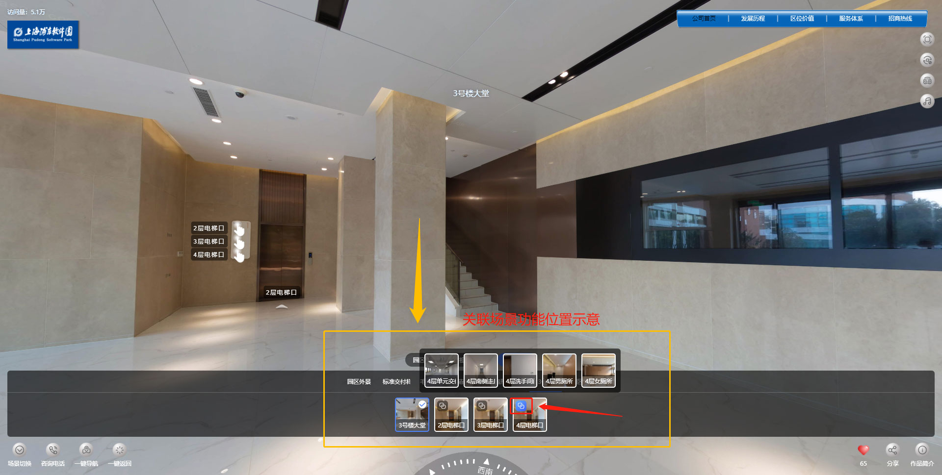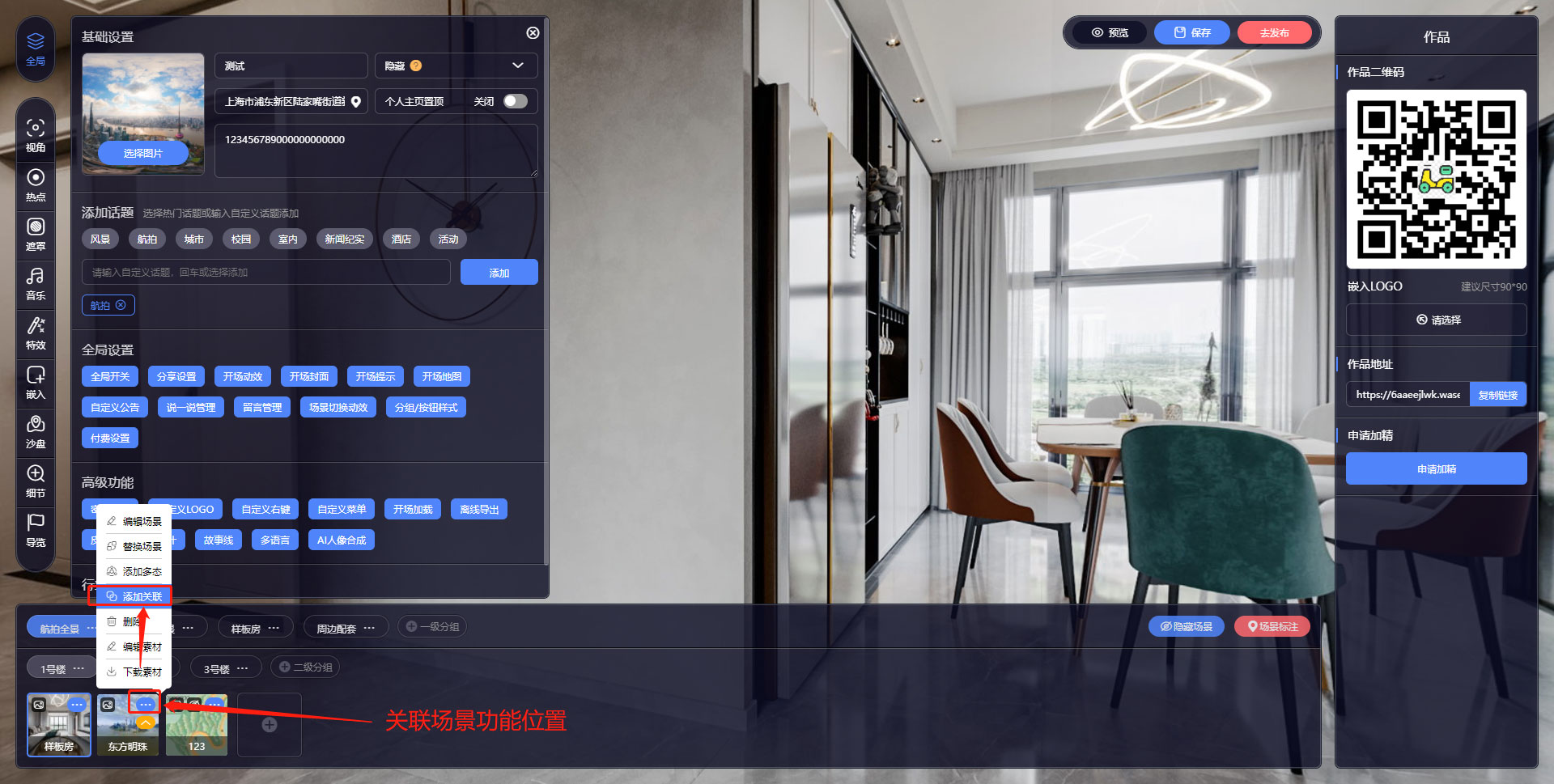 点击关联场景缩略图进入关联场景的操作界面,左侧的这些功能模块对关联场景也同样可用,